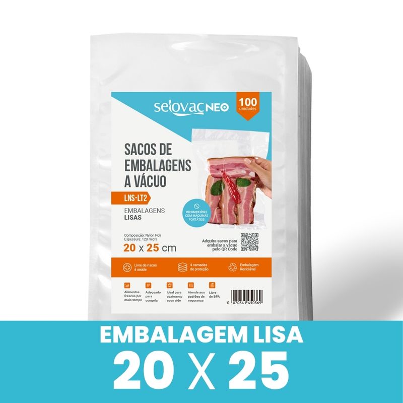 As embalagens para vácuo lisas transparentes Selovac são a escolha ideal para a conservação eficiente de alimentos e outros produtos, combinando praticidade e qualidade. Disponíveis em tamanhos variados (15x20 cm, 20x25 cm, 20x30 cm, 25x30 cm, 28x25 cm, 28x30 cm e 28x33 cm), cada pacote contém 100 unidades, permitindo um armazenamento otimizado. O modelo NEO proporciona um fechamento seguro, permitindo embalar tanto produtos alimentícios quanto não alimentícios, mantendo o frescor e a integridade dos itens por mais tempo.