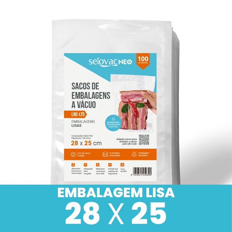 As embalagens para vácuo lisas transparentes Selovac são a escolha ideal para a conservação eficiente de alimentos e outros produtos, combinando praticidade e qualidade. Cada pacote contém 100 unidades, permitindo um armazenamento otimizado. O modelo NEO proporciona um fechamento seguro, permitindo embalar tanto produtos alimentícios quanto não alimentícios, mantendo o frescor e a integridade dos itens por mais tempo.